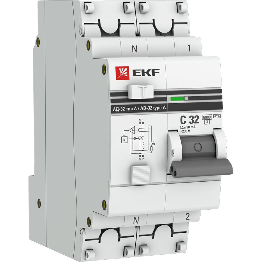 DA32-6-32-30-a-pro, Дифференциальный автомат АД-32 1P+N 32А/30мА (хар. C, A, электронный, защита 270В) 6кА EKF PROxima