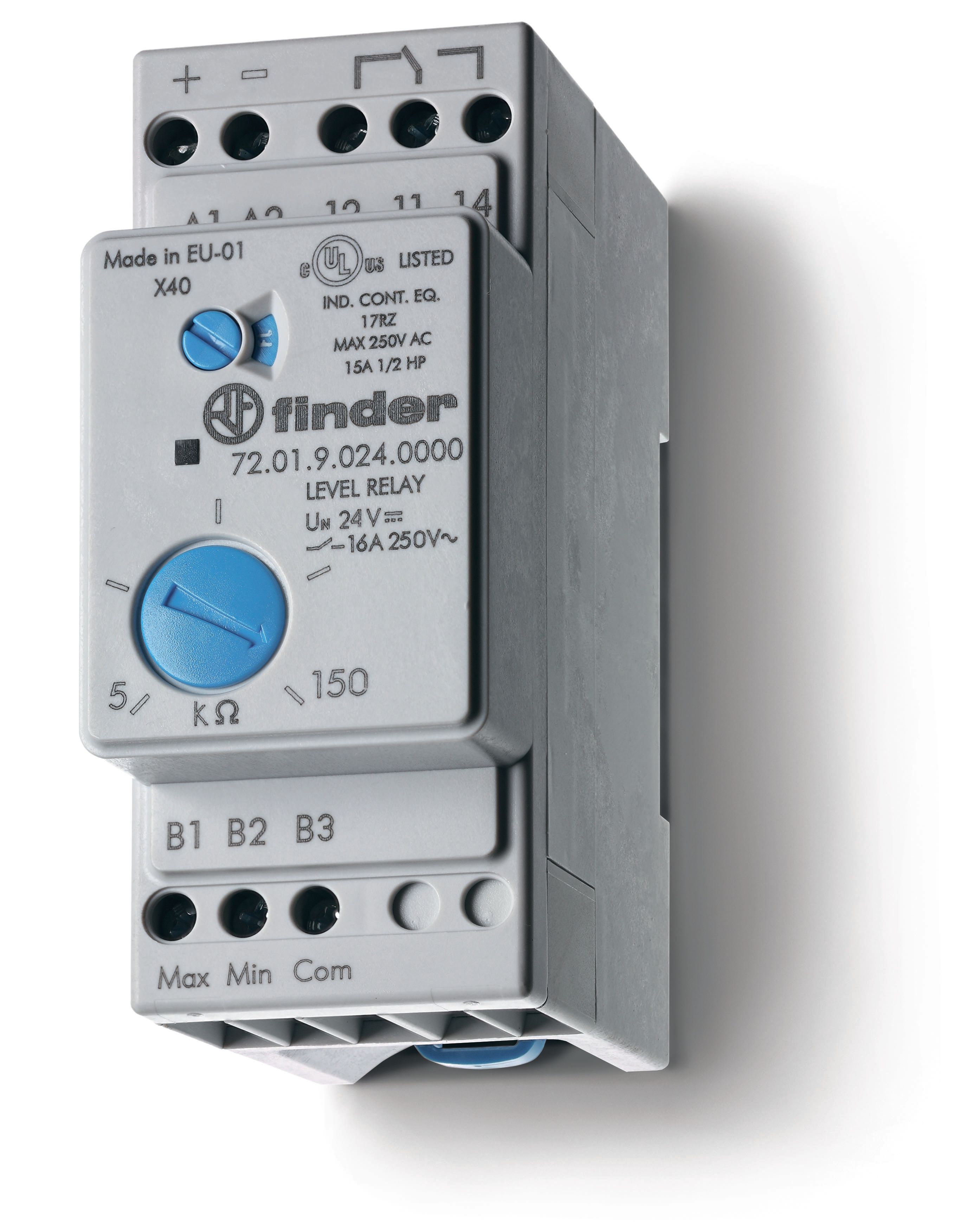 720181250000, Реле контроля уровня; настраиваемый диапазон чувствительности 5…150кОм; питание 125В AC; выход 1CO 16А; модульное, ширина 35мм; степень защиты IP20