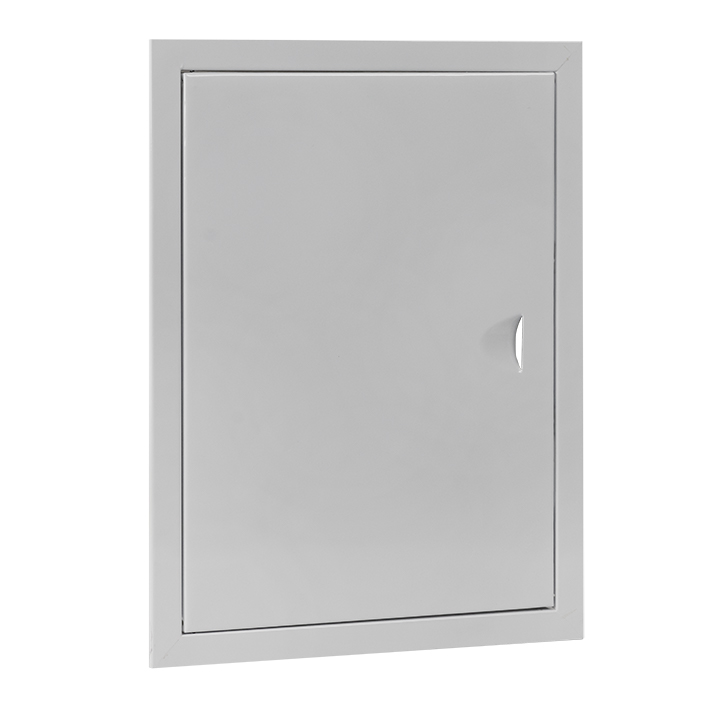 На дверце предусмотрен паз для удобного открывания люка. Закрытие дверцы производится путем фиксации "шип - паз". Габаритный размер, указанный в наименовании - это габарит внутренней части люка, монтируемой в нишу.