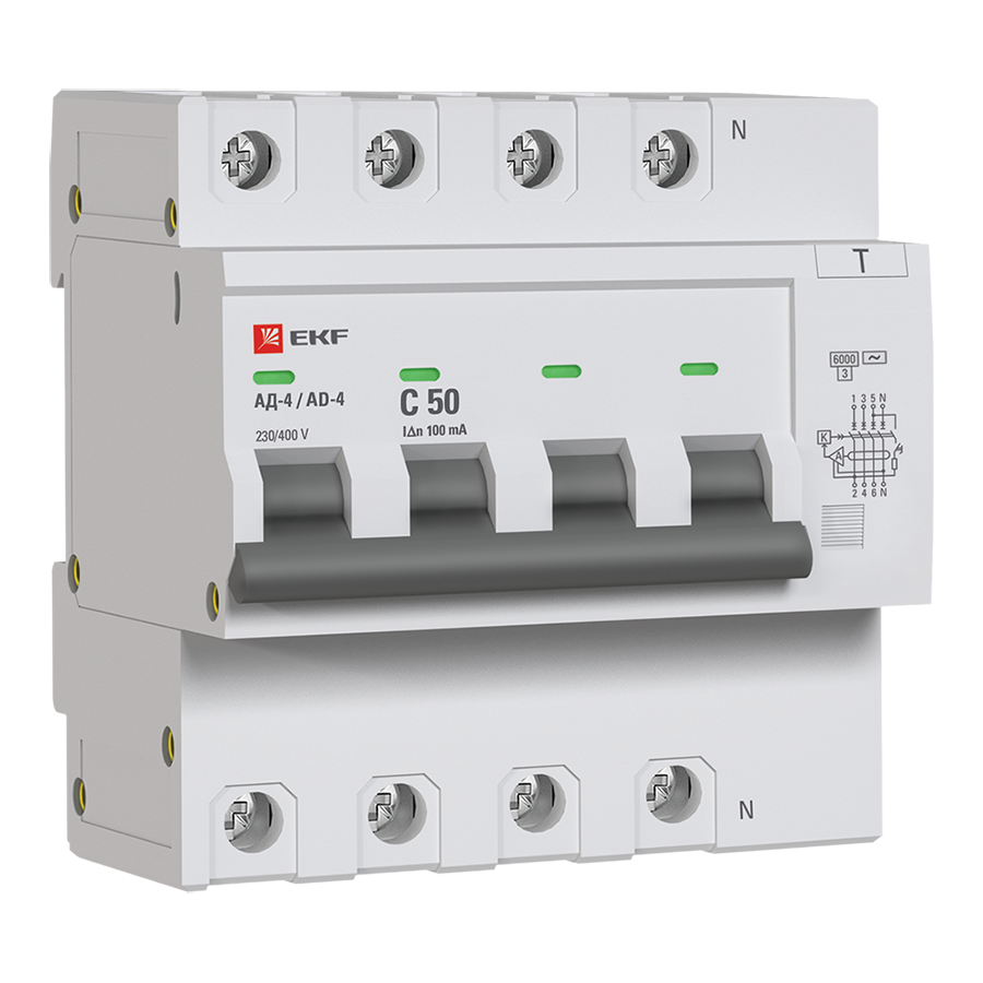 DA4-6-50-100-pro, Дифференциальный автомат АД-4 50А/100мА (хар. C, AC, электронный) 6кА EKF PROxima